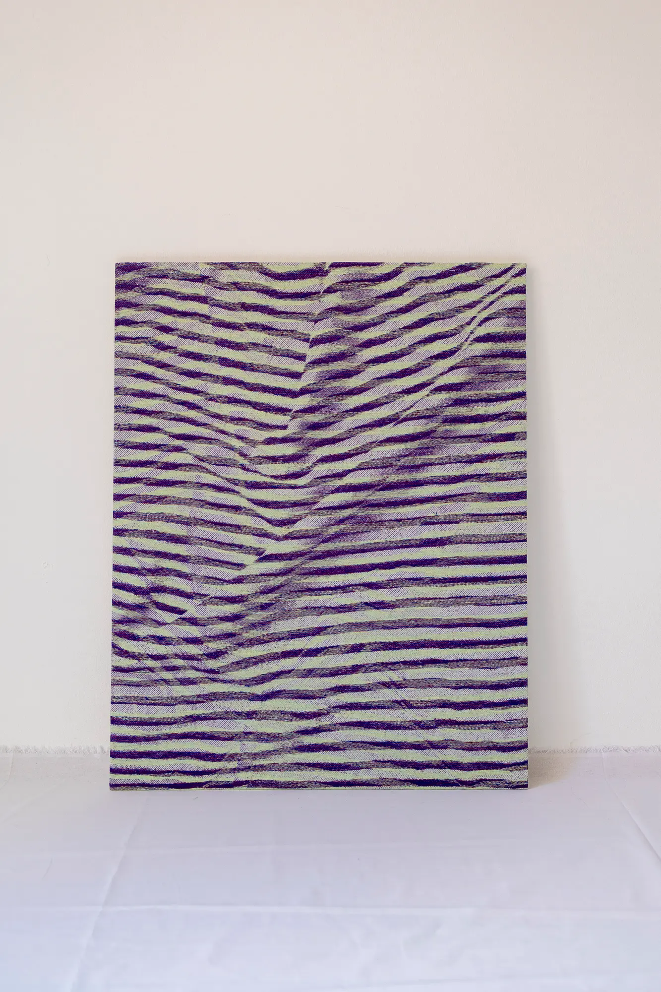 À la croisée des trames réelles et fictives, le travail graphique mis en œuvre dans les tissages trompe la représentation du tissu – les textiles réalisés sont plats mais évoquent un tissu rayé mis en pli. Les créations évoquent des récits textiles en proposant une écriture particulière où graphisme, matérialité et héritage culturel se rencontrent.